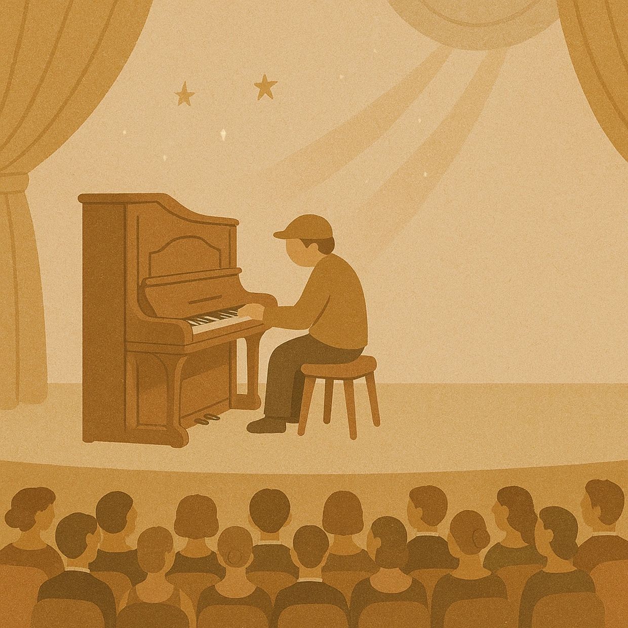 Se lo comunicaron al público, y el operario se sentó frente al piano. Empezó a tocar una pieza desconocida, pero la música que brotó era como un canto de ángeles. Las teclas subían y bajaban con una precisión y una emoción magistrales.